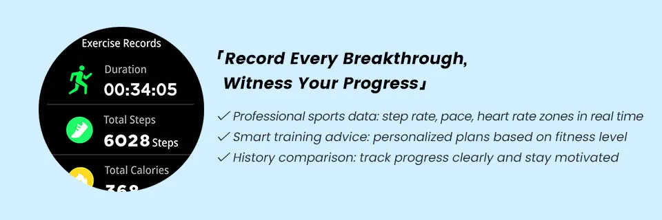 Activity Tracking: Exercise history, pedometer, standing, calories burned, training analysis, real-time pace and distance.